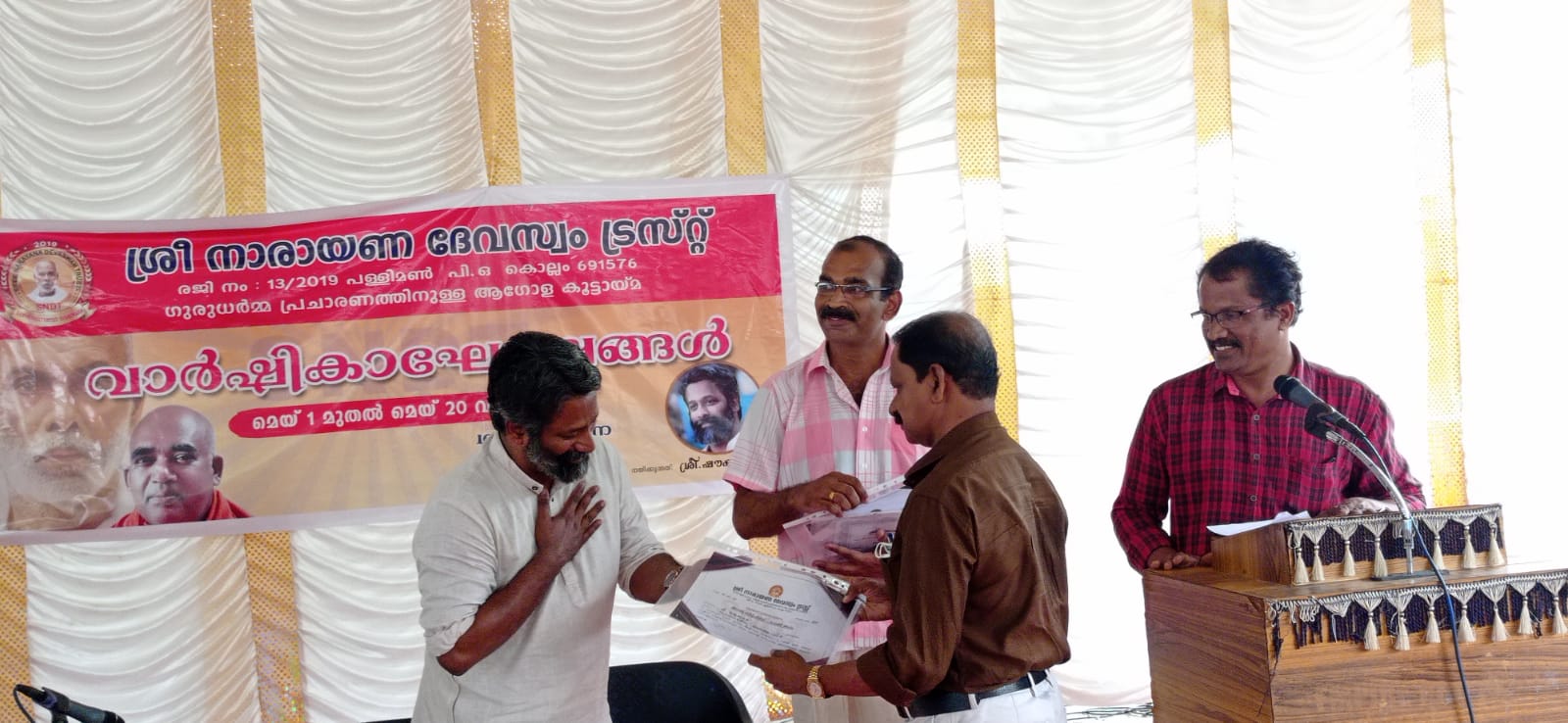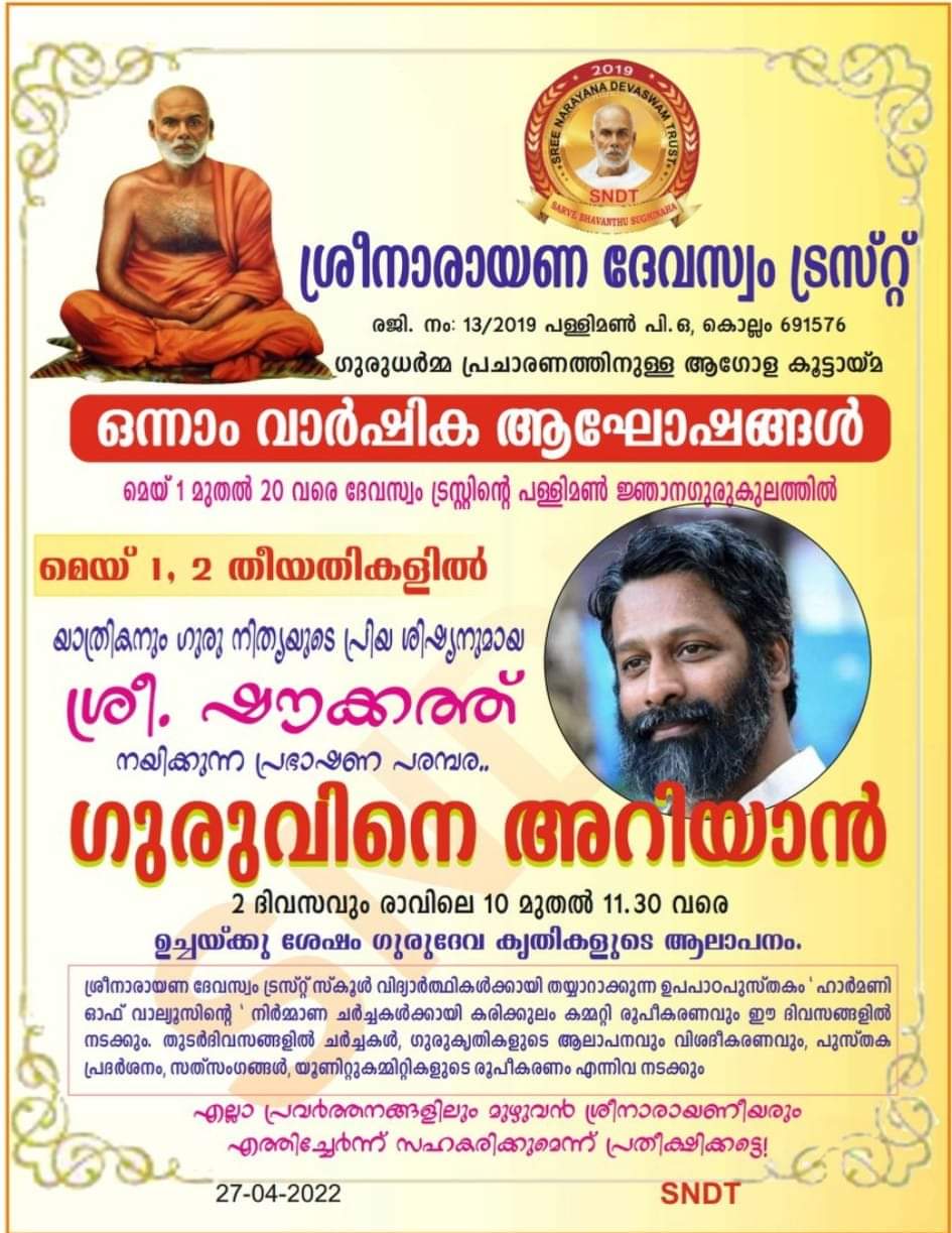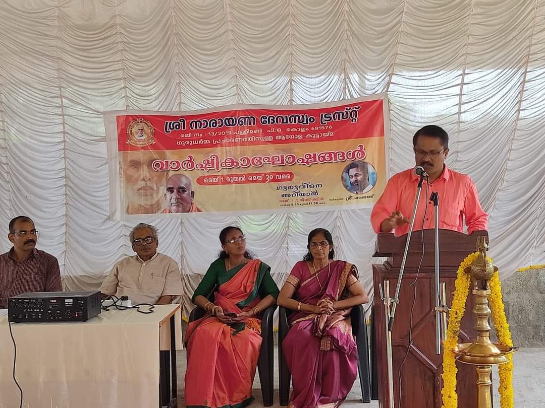 ശ്രീനാരായണ ദേവസ്വം ട്രസ്റ്റ് ന്റെ ഒന്നാം വാർഷികാഘോഷങ്ങളുടെ സമാപന ദിവസമായ മെയ് 29ന് രാവിലെ 10ന് ശ്രീ. സുരേഷ് സിദ്ധാർത്ഥ യുടെ അദ്ധ്യക്ഷതയിൽ കൂടിയ യോഗത്തിൽ ശ്രീനാരായണ ദേവസ്വം ട്രസ്റ്റ് പേട്രൺ അംഗമായ ശ്രീമതി. ഗീത C, മയ്യനാടും ശ്രീമതി .സുനന്ദ ഹേമചന്ദ്രൻ ശ്രീമതി .ശ്രീലദിലീപ് എന്നിവ എന്നിവരു ചേർന്ന് ട്രസ്റ്റ് ആശ്രമത്തിലേയ്ക്ക് അഹൂജയുടെ ഒരു ഫുൾ മൈക്ക് സെറ്റ് സംഭാവനയായി സമർപ്പിച്ചു. ഇതോടെ ഇനി തടസ്സമില്ലാതെ പ്രഭാഷണ പരമ്പര സംഘടിപ്പിക്കാൻ ആശ്രമ ആഡിറ്റോറിയത്തിൽ സാധിക്കും എന്ന് പരമാനന്ദം TV ഓൺലൈൻ ചാനൽ ഉത്ഘാടനം ചെയ്തു സംസാരിക്കവേ വൈസ് പ്രസിഡന്റ് ശ്രീ. Dr N വിശ്വരാജൻ സാർ അഭിപ്രായപ്പെട്ടു. അദ്ദേഹത്തിന്റെ ഹ്രസ്വ പ്രഭാഷണത്തോടെ വാർഷികാഘോഷ പരിപാടികൾ സമാപിച്ചു.