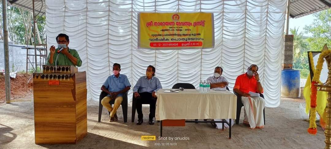 2021 ഡിസംബർ 5 ഞായറാഴ്ച 2.30 ന് പളളിമൺ SNDT പർണ്ണശാലയിൽ പുതിയതായി പണിതീർത്ത ആഡിറ്റോറിയത്തിൽ നടന്ന ചടങ്ങിൽ കൊല്ലംശ്രീ നാരായണ ദേവസ്വം ട്രസ്റ്റ് പേട്രൺ അംഗവും ഗാന്ധിഭവൻ ഇൻ്റർനാഷണൽ ട്രസ്റ്റ് സെക്രട്ടറിയും കേരളാ ഓർഫനേജ് കൺട്രോൾ ബോർഡ് അഗവുമായ ശ്രീ .Dr പുനലൂർ സോമരാജൻ ഉദ്ഘാടനം ചെയ്തു. ഗുരുസ്മരണയോടെ ആരംഭിച്ച ചടങ്ങിന് ട്രസ്റ്റ് ചെയർമാൻ ശ്രീ.സുരേഷ് സിദ്ധാർത്ഥ അദ്ധ്യക്ഷത വഹിച്ചു. ശ്രീ നാരായണ ദർശനം ലോകം മുഴുവൻ വ്യാപിച്ചു നിൽക്കുന്ന മനുഷ്യസ്നേഹത്തിൻ്റെ മായാ മന്ത്രമായിരിക്കുന്നു ഇപ്പോഴെന്ന് ഡോ.പുനലൂർ സോമരാജൻ പറഞ്ഞു. കേരളത്തിനെ ഭ്രാന്താലയത്തിൽ നിന്നും സ്നേഹാലയമാക്കാൻ പ്രയത്നിച്ച ആധുനികനായ പ്രവാചകനായിരുന്നു ഗുരുദേവൻ. ഗുരുദേവനെ പൂജിച്ചു സായൂജ്യമടയുകയല്ല മറിച്ച് ഗുരുദർശനം ജീവിതത്തിൽ പകർത്തുകയാണ് നാം ചെയ്യേണ്ട ശരിയായ ഗുരുദക്ഷിണ എന്ന് ശ്രീ ഡോ. പുനലൂർ സോമരാജൻ അഭിപ്രായപ്പെട്ടു. സകല മതസാരവുമേകമെന്ന ഗുരുവിൻ്റെ ഉദ്ബോധനം പ്രാവർത്തികമാക്കാനും പാഠ ഭാഗത്തിലുൾപ്പെടുത്താനും തയ്യാറായാൽ സമൂഹത്തിലെ അസമത്വവും ജാതി വെറിയും തുടച്ചു നീക്കാൻ കഴിയുമെന്നും ഗുരുകൃതികളെ ജനമസ്സുകളിലെത്തിക്കുക എന്ന മഹത്തായ കർത്തവ്യമാണ് പരമാനന്ദം എന്ന പ്രോജക്ടിലൂടെ ട്രസ്റ്റ് ലക്ഷ്യമാക്കുന്നത് എന്നും അദ്ധ്യക്ഷപ്രസംഗത്തിൽ ശ്രീ സുരേഷ് സിദ്ധാർത്ഥ പറഞ്ഞു ലേകത്തിലെ ഏറ്റവും മാതൃകാപരമായ ശ്രീ നാരായണീയ ദർശന കേന്ദ്രമാണ് ട്രസ്റ്റ് വിഭാവന ചെയ്യുന്നത് എന്നും അദ്ദേഹം പറഞ്ഞു. ട്രസ്റ്റ് നിർമ്മിച്ച ഓഡിറ്റോറിയത്തിന് സംഭാവന ചെയ്തവരെയോഗത്തിൽ ആദരവുകൾ നൽകി. അംഗത്വ സർട്ടിഫിക്കറ്റുകളും വിതരണം ചെയ്യപ്പെട്ടു. ശ്രീമതി .റാണി രതീഷ് സ്വാഗതം പറഞ്ഞു. ഒരു വർഷത്തെ കണക്കുകളും റിപ്പോർട്ടും സെക്രട്ടറി ശ്രീ. ഗിരിഷ് ചന്ദ്രൻ അവതരിപ്പിച്ചു. യോഗത്തിൽ പതിനഞ്ച് അംഗങ്ങളുടെ എക്സിക്യുട്ടിവ് കമ്മിറ്റി തെരഞ്ഞെടുത്തു. ശ്രീ.എസ് രാജീവ് നന്ദി പറഞ്ഞു യോഗം അവസാനിപ്പിച്ചു.