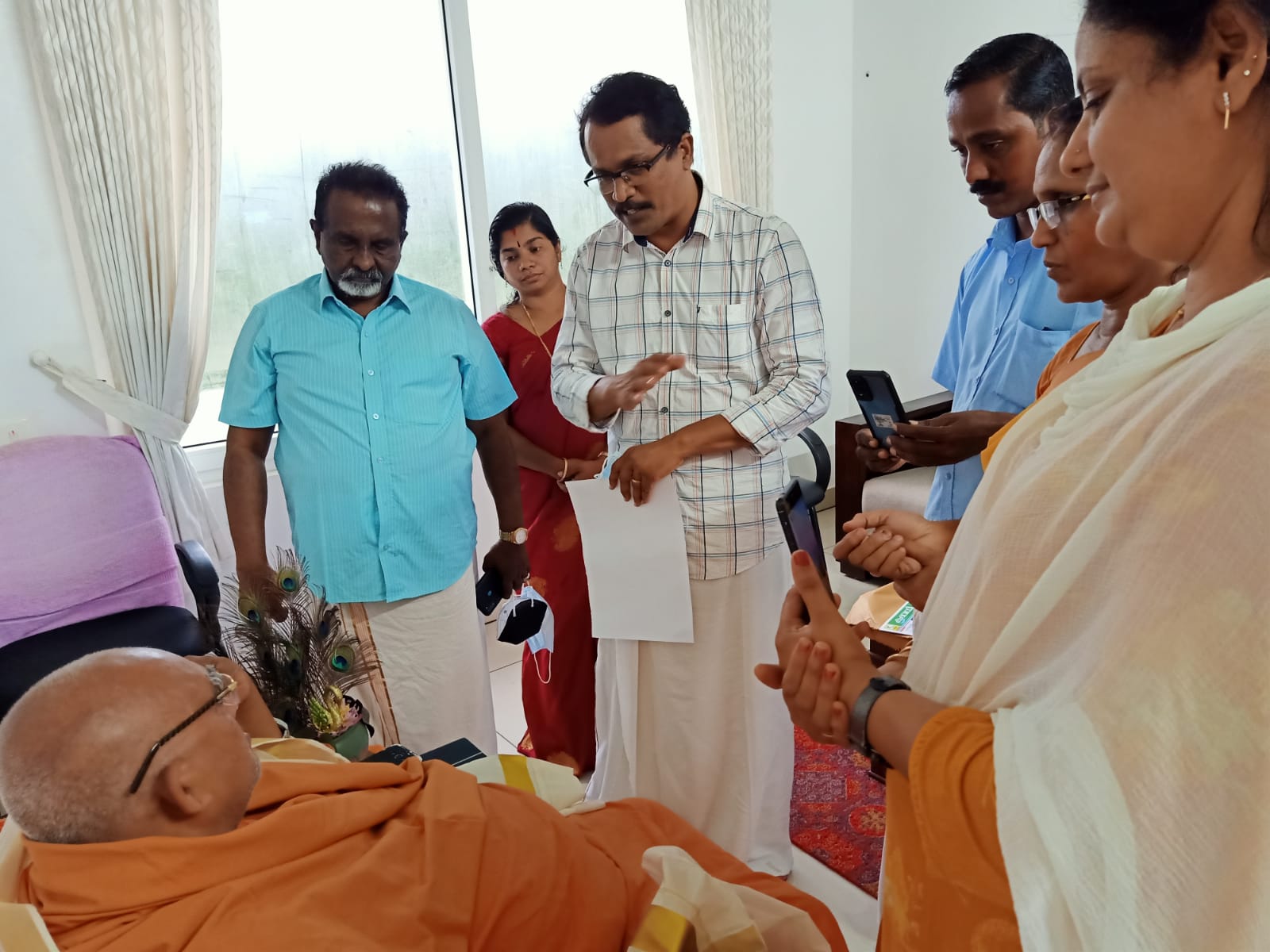 പള്ളിമൺ ശ്രീ നാരായണ ദേവസ്വം ട്രസ്റ്റ് ചെയർമാൻ ശ്രീ. സുരേഷ് സിദ്ധാർത്ഥയും സംഘവും ഇന്നലെ ശിവഗിരിയിൽ എത്തി അനുഗ്രഹം വാങ്ങുകയും ട്രസ്റ്റിന്റെ ഭാവികാല പ്രവർത്തനങ്ങളെക്കുറിച്ച് വിവരിക്കുകയും നിർദ്ദേശങ്ങൾ സ്വീകരിക്കുകയും ചെയ്തു. എല്ലാ പ്രവർത്തനങ്ങൾക്കും മാർഗ്ഗനിർദ്ദേശം നൽകി ഒപ്പം ഉണ്ടാകുമെന്ന് സ്വാമികൾ ഉറപ്പു നൽകി. കൊല്ലം ജില്ലയിലെ മുട്ടറ മരുതിമലയിൽ ട്രസ്റ്റ് നിർമ്മിക്കുന്ന ഗുരുദേവന്റെയും രവീന്ദ്രനാഥ ടാഗോറിന്റെയും ശില്പത്തിന്റെ ഫോട്ടോഗ്രാഫുകൾ സ്വാമികളെ കാണിക്കുകയും, അതോടൊപ്പമുള്ള നവോദ്ധാന മ്യൂസിയത്തിൽ ഉൾക്കൊള്ളിക്കേണ്ട കാര്യങ്ങളെക്കുറിച്ച് വിശദമായി ചർച്ച ചെയ്യുകയും ചെയ്തു. സി. എഫ് ആൻഡ്രൂസ്, ഡോ. പൽപ്പു, നടരാജഗുരു, കുമാരനാശാൻ തുടങ്ങി ഗുരുവിന് ഒപ്പം സന്നിദ്ധരായ മുഴുവൻ പേരെയും ഉൾപ്പെടുത്തി വേണം നവോത്ഥാന മ്യൂസിയം എന്ന് സ്വാമികൾ നിർദ്ദേശിച്ചു. 230 അടി ഉയരമുള്ള പരമാനന്ദം പ്രോജക്ടിന്റെ മുകൾതട്ടിൽ സ്ഥാപിക്കുന്ന ശില്പങ്ങളെക്കുറിച്ചുള്ള ചർച്ചാവേളയിൽ ഗുരുദേവന്റെയും ശ്രീബുദ്ധന്റെയും യേശുദേവന്റെയും ശങ്കരാചാര്യരുടെയും ശില്പങ്ങൾ ആയിരിക്കണം വരേണ്ടത് എന്ന് സ്വാമികൾനിർദ്ദേശിച്ചു. ഒന്നര മണിക്കൂർ നീണ്ട്നിന്ന ചർച്ചയ്ക്ക് ശേഷം ഒരിക്കൽ കൂടി സ്വാമികളുടെ അനുഗ്രഹാശിസുകൾ നേടി ഞങ്ങൾ തിരിച്ചു പോന്നു.